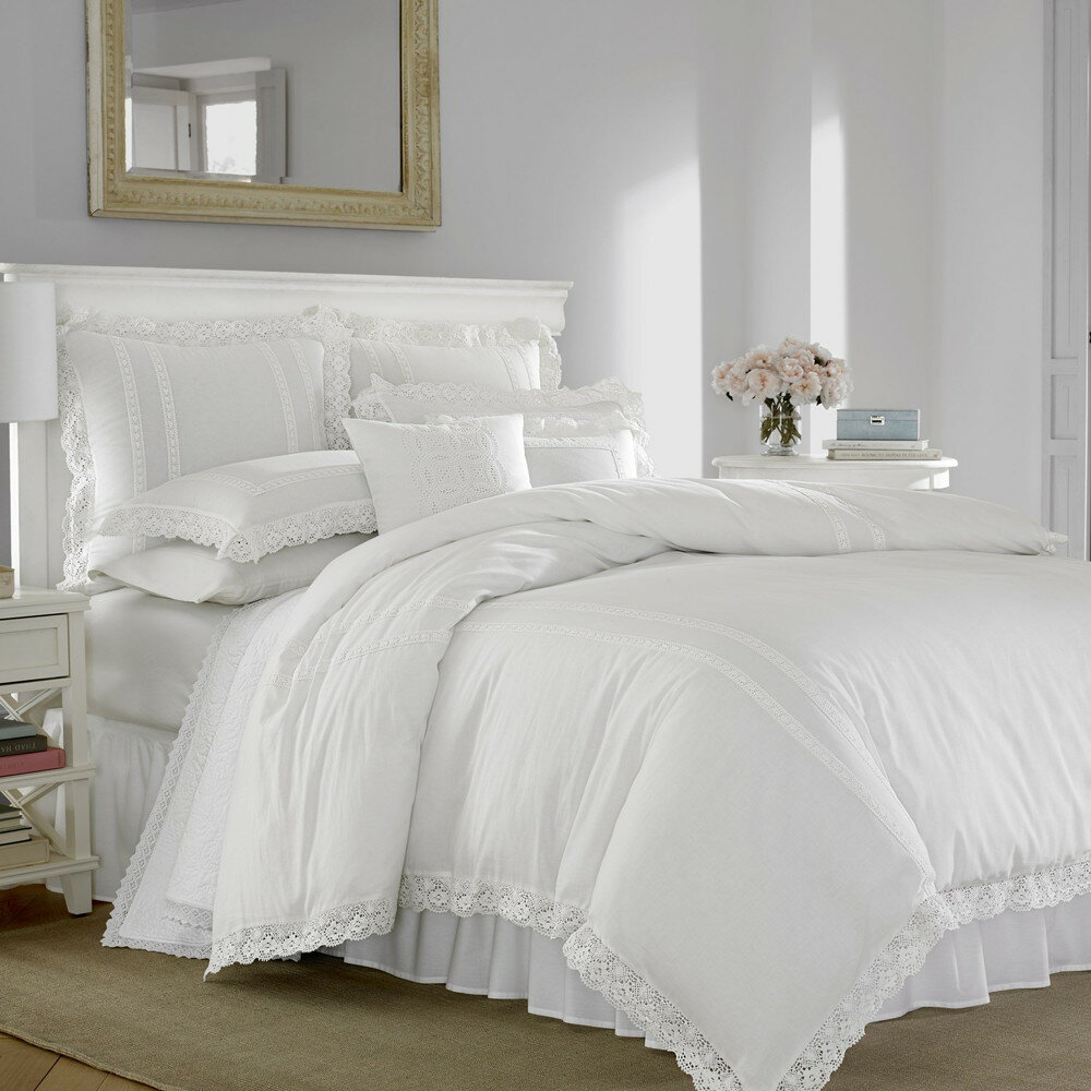 【スタンダード】 Laura Ashley ローラ アシュレイ Annabella White 布団カバー・セット (ホワイト) 218×167cm 掛布団カバー1枚&枕カバー1枚 寝具