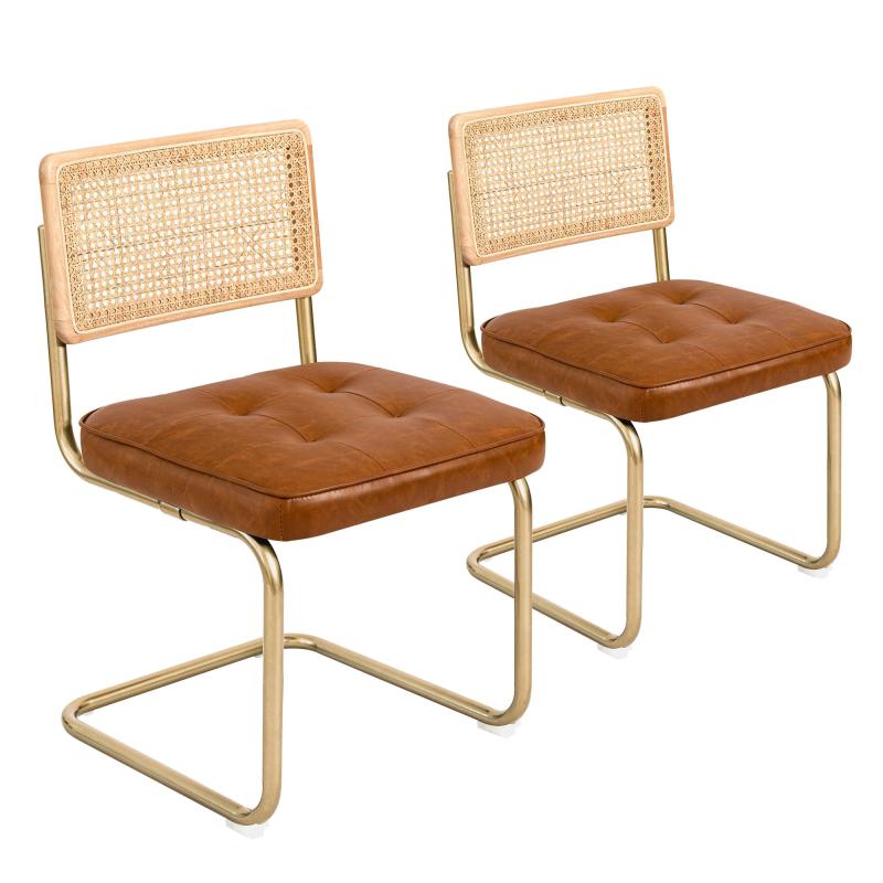CangLong ダイニングチェア ラタンチェア 椅子 おしゃれ 北欧 籐の背もたれ 金属脚 布張ダイニングルーム リビング キッチンチェア