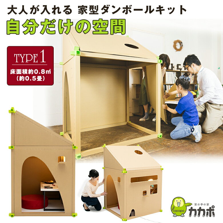 商品名 カカポ TYPE 1 サイズ 幅98cm×奥行88.7cm×高さ147cm 床面積 約0.8(約0.5畳) 商品説明 "家の中の家 カカポ"は、紙管とジョイントを組み合わせて、家の中に建築的な空間を作ることのできるシステムです。ここでは、家の中やパブリックスペースでさまざまな用途に使える、家型のキットです。お子さんから大人の方まで使える、自分だけの空間を作ってみませんか?はじめてのカカポはここから。大人1人がゆったり入れる充分な大きさ。お子さんなら二人くらいでも大丈夫!床面積はタタミ約0.5畳分です。 関連ワード カカポ タイプ1 CACAPO TYPE1 株式会社モービー・ディック ダンボール 紙管 ハウス 家型 部屋 テレワーク 会議 リモートワーク 在宅勤務 在宅ワーク 建築雑貨 自分時間 自由な空間 簡単空間 秘密基地 自分部屋 子供部屋 勉強部屋 仕事部屋 カフェ リビング 遊び場 子供 大人 休憩 集中 読書 音楽 快適 勉強 宿題 趣味 椅子 イス いす 机 つくえ テーブル ソファー 壁紙 カスタマイズ おすすめ オススメ 男性用 女性用 ユニセックス メンズ レディース men's ladies お洒落 可愛い かっこいい モテる ギフトYouTube ユーチューバー 撮影 母の日 父の日 新生活 引っ越し祝い 新築祝い 結婚祝い 引き出物 バレンタインデー ホワイトデー クリスマス Xmas お正月 贈り物 敬老の日 誕生日プレゼント 女性 男性 お返し 想いを繋ぐ百貨店【TSUNAGU】