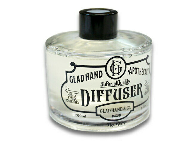 ギフト対応【Diffuser】 商品詳細 【GLAD HAND/グラッドハンド】の「Diffuser/ディフューザー」になります。 古語で薬局の意味を持つ「APOTHECARY/アポセカリー」。 その言葉を掲げ人々から愛される歴史ある薬局をイメージし古くから薬局で扱われてきたパフュームやコスメ、タオルなどクオリティー高く提供するブランドとして立ち上がりました。 GLAD HANDの世界観を落とし込んだプロダクトは皆様のライフスタイルを豊かに彩ります。 古き良き時代の束の間の追憶をお楽しみください。 過ぎ去る時の流れに刻まれた追憶の香り。 シトラスフローラルからの心落ち着くクラリセージとダライハーブが融合、ウッディーな香りにハーバルフローラルが配合されたフゼアの調香が日常に寄り添い毎日の生活を上質に致します。 ディフューザースティックが予め1セット付属致します。 【No.1924】 【スティック1セット付属/オリジナルパッケージ】 【品番:Diffuser】 【容量:200ml】 【香り:No.1924】