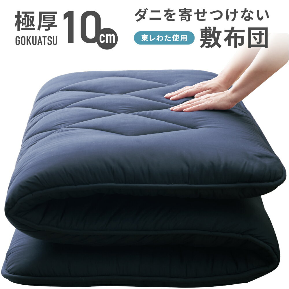 【5%クーポン★〜27日AM2時】送料無料 敷布団 敷き布団 防ダニ 抗菌防臭 快適清潔シリーズ ダニを寄せつけない敷布団 極厚 10cm しっかり 高反発ウレタン しき布団 東レわた使用 ふっくら シングル セミダブル ダブル AQUA アクア