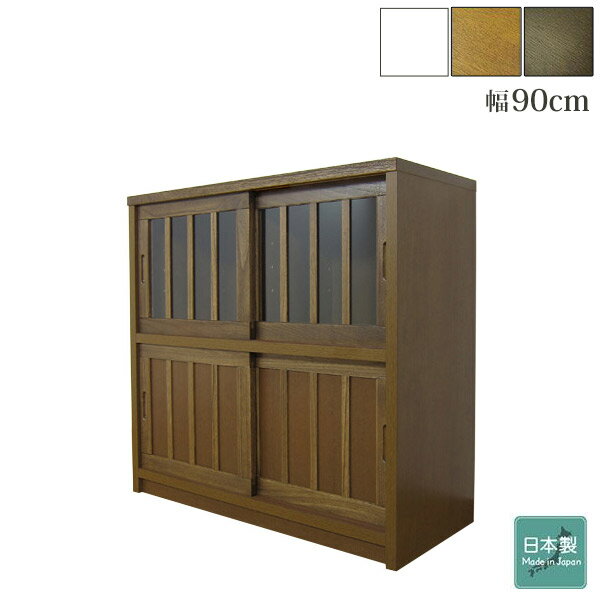 食器棚 引き戸 水屋 食器棚モダン 水屋箪笥 日本製 食器戸棚 桐天然木水屋 国産 キャビネット 和風 カップボード 幅90cm モダン キッチンボード 木製 食器 収納 モダンな食器棚 完成品の食器棚 和風食器棚 レトロ 古風 和室 和 モダン 桐 大川家具 浮造り 可動棚 90 送料無料