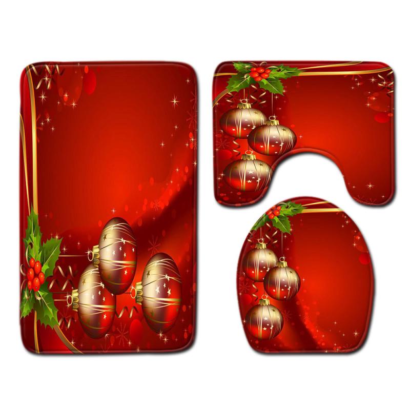 フロアマット クリスマス トイレ3点セット バスルーム 浴室用 便座カバー フタカバー 足元マット ポリエステル製 洗える 丸洗いOK 滑り止め 吸水 速乾 長方形 インテリア デコレーション 模様替え