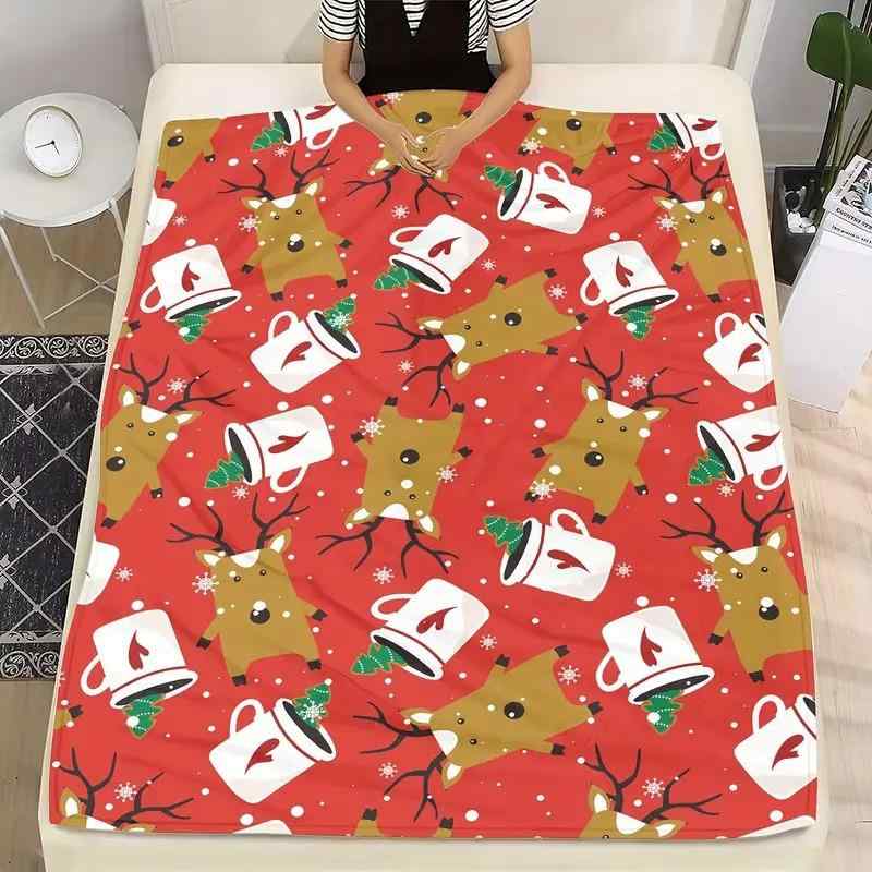 毛布 クリスマス柄 フランネル 柔らかい 暖かい 快適 ポリエステル 合成繊維 ブランケット ソファ用 ベッド用 オフィス用 モダン シンプル オールシーズン使用