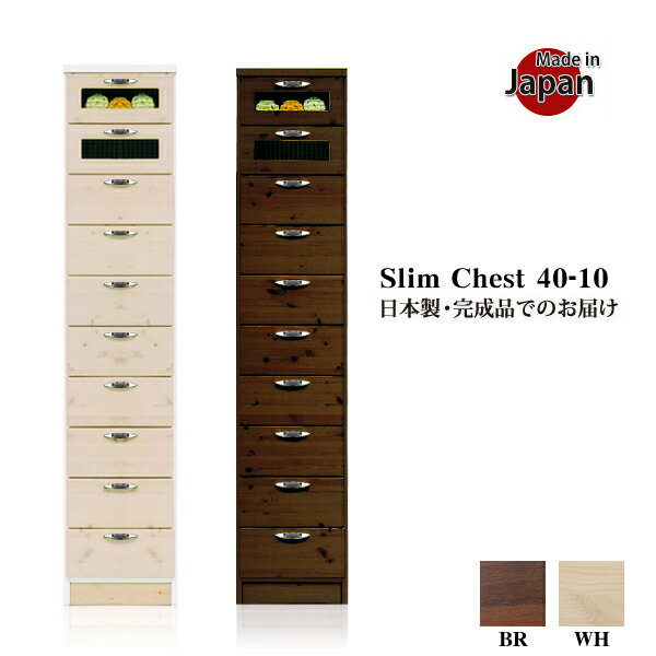 ランドリー収納 サニタリー収納 10段 タワーチェスト 完成品 ハイチェスト ハイタイプ 日本製 リビングチェスト 幅39 パイン材 ブラウン ホワイト カントリー スリム チェスト 隙間収納 隙間 収納 おしゃれ お洒落 狭い リビング収納 国産 送料無料