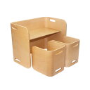 ブランド HOPPL(ホップル) 品番・商品名 CL-3set ・ コロコロチェア&デスクセット 生産国 中国 材質 ブナ・カバ サイズ 商品サイズ:W66×D40×H52cm(デスク)、W28×D30×H31cm(チェア) 重量:8,800g(デスク)、2,500g 内容 デスク、チェア×2 対象年齢 6ヶ月〜大人 カラー ナチュラル/アイボリー 商品紹介 お子さまの成長とともに長く使える人気アイテム、コロコロデスク&チェア3点セット。かわいらしいコロンとしたフォルムと木のぬくもりが魅力のキッズ家具は、遊び・学び・くつろぎの時間を心地よくサポートします。 デスクとチェアは軽量ながら頑丈な木製設計で、お子さまが安心して使用可能。チェアは座る向きを変えることで高さを調整でき、デスクもサイドを入れ替えることで使い方が広がります。さらにスタッキング収納が可能なので、省スペースでスッキリ片付けられるのも大きな魅力です。 絵本を読んだり、お絵描きをしたり、学習机としても使える多用途デスクセットは、インテリアに自然に馴染むデザインで、リビングや子ども部屋に置いてもおしゃれに演出します。 出産祝いや入園祝い、誕生日プレゼントとしても喜ばれる、実用性とデザイン性を兼ね備えたコロコロデスク&チェア3点セット。お子さまの成長を見守りながら、遊びも学びも快適にサポートする上質なキッズ家具をぜひお選びください。 専用クッションもご用意しております。 ※北海道・沖縄・離島及び一部地域への配送は行っておりません。 ※天然木を使用した曲げ木加工の手作業・手作り品のため、木目や節の形が完成品により異なります。 ※喘息とアレルギーの原因の一部とされるホルムアルデヒドの放散量がもっとも低い、安全性の高いF☆☆☆☆(フォースター)レベルの基準をクリアした商品です。▼コロコロデスク&チェア ブラックウォールナット
