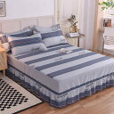 ベッド スカート 純 綿 ベッド スカート 単品、 シンプルな ストライプ 柄 シングル ダブル コットン ベッド シーツ、 スカート 付き ベッド カバー、 ベッド エプロン カバー 3点 セット