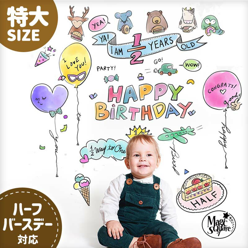 今だけおまけ付き ウォールステッカー 送料無料 【ハーフ専用 特大サイズ ぽっぴーバースデー】 貼ってはがせる 賃貸OK 大きい 壁紙 壁 シール 北欧 おしゃれ 植物 身長計 ハーフバースデー 誕生日 バースデー 受注印刷