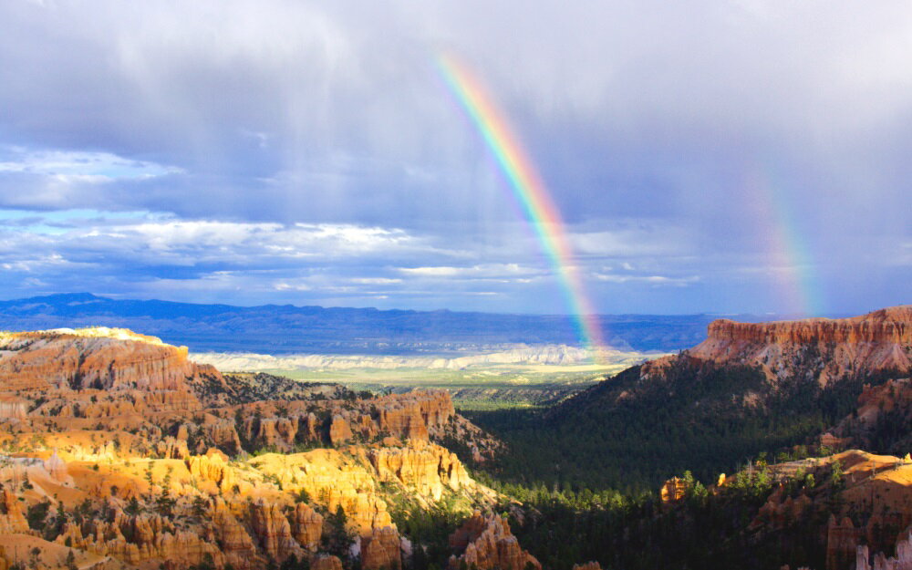 絵画風 壁紙ポスター (はがせるシール式) ブライスキャニオンの雨と二重の虹 ユタ州 虹 レインボー キャラクロ SRBW-005W2 (ワイド版 603mm×376mm) <日本製> ウォールステッカー お風呂ポスター
