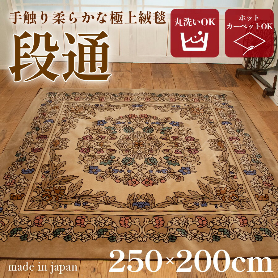 送料無料 絨毯 訳あり ラグマット 3畳 長方形 250cm×200cm 洗える 国産 厚手 カーペット 段通 ホットカーペットカバー 春 暖か おしゃれ 高級 金華山織 キャニオン ベージュ あす楽 【メーカー直販】