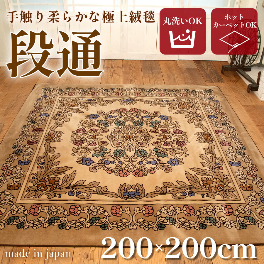 送料無料 訳あり 絨毯 ラグマット 2畳 正方形 200cm×200cm 洗える 国産 厚手 カーペット 段通 ホットカーペットカバー 春 暖か おしゃれ 高級 金華山織 キャニオン ベージュ あす楽 【メーカー直販】