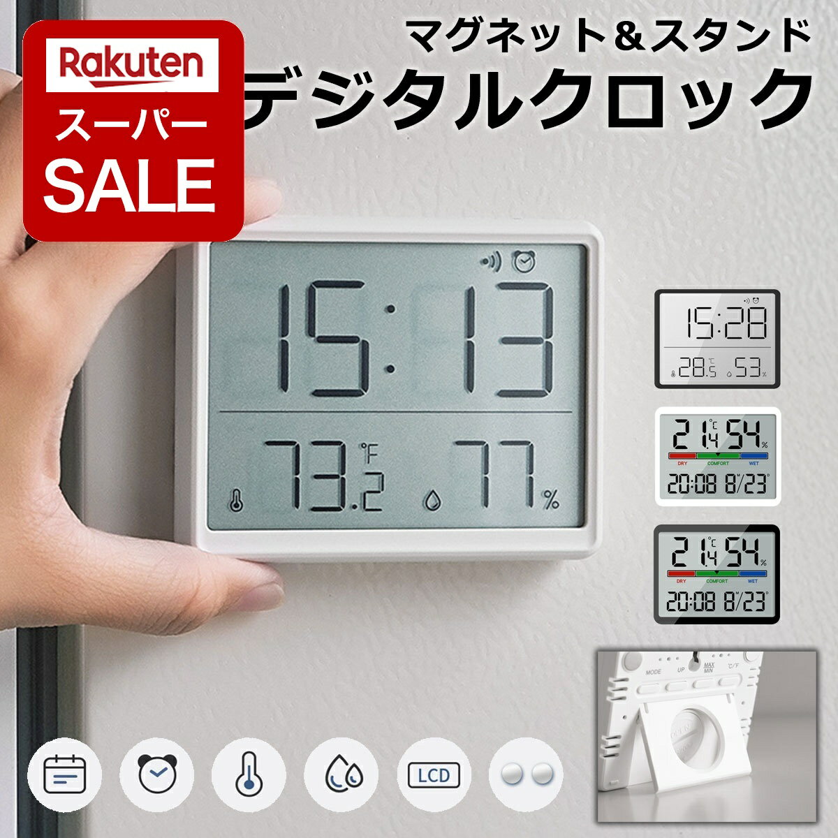 【スーパーSALE P2倍!】時計 マグネット 磁石 おしゃれ 置き時計 掛け時計 キッチン シンプル デジタル コンパクト 持ち運び 熱中症対策 卓上スタンド アラーム 温度表示 湿度表示 日付表示 見やすい 簡単操作 タイマー リビング 寝室 インテリア 小さい 人気