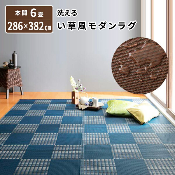 送料無料 洗える い草風モダンデザインラグ Duffle ダッフェル 本間6畳 286×382cm 速乾性 モダン柄 市松模様 洋室 和室 日本製
