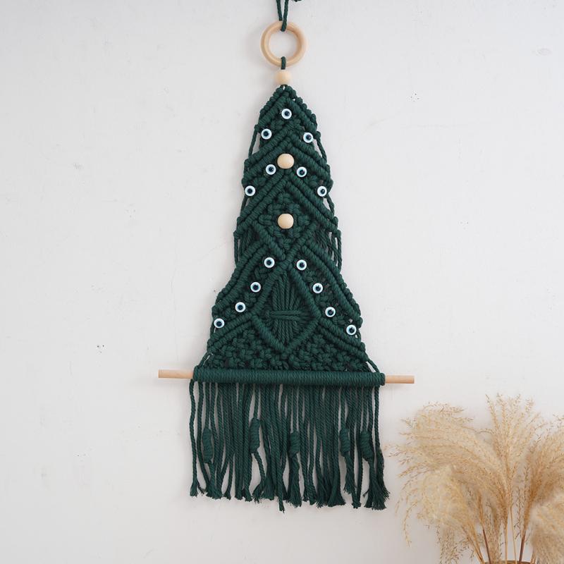 タペストリー 手編み コットンロープ 綿紐 ボヘミアン 北欧 クリスマスツリー ツリー型 壁掛け 飾り インテリア リビング 玄関 ホリデーシーズン おしゃれ 緑色