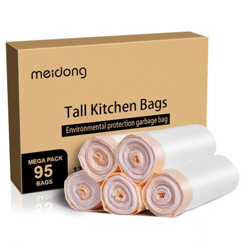 MeiDong Trash Bags 13ガロンGarbage Bags Large Tall Drawstring Strongバッグforゴミ箱Garbage Binリビングガーデンベッドルーム( 95カウントですべて)