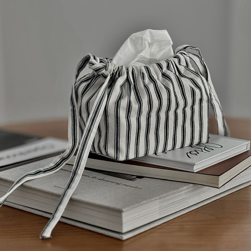 stripe drawstring bag ティッシュケース【ART OF BLACK】