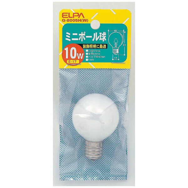 ELPA|エルパ G-8005H-W 電球 ミニボール球 ホワイト [E17 /ボール電球形 /10W相当 /電球色 /1個][G8005HW]