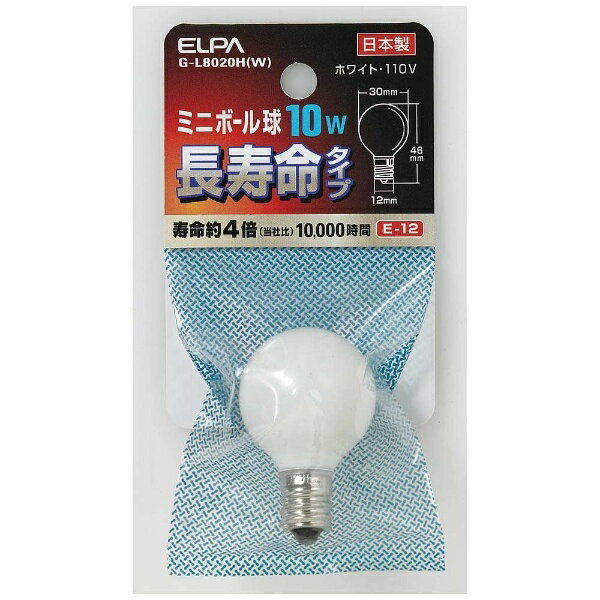 ELPA|エルパ G-L8020H-W 電球 ミニボール球 ホワイト [E12 /ボール電球形 /10W相当 /電球色][GL8020HW]
