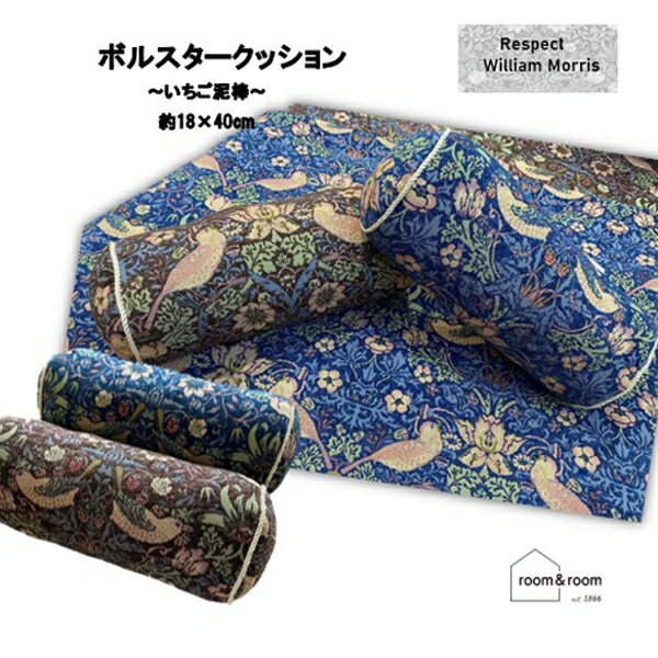 ボルスター クッション ジャガード いちご泥棒 ちょこっと枕 足枕 腰あてクッション 使い方いろいろ 約18x40cm room&room 1623156