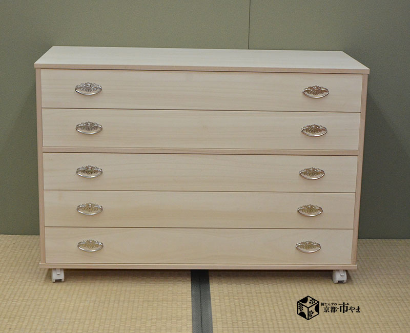 シルバー取っ手 桐たんす 桐 押入 収納 桐箪笥 たとう紙サイズ幅100cm高さ70cm 5段 桐タンス チェスト 押入 収納 ストッパーキャスター付 肥前桐民芸 国産品 京都市やま オリジナル 着物用 日本製 桐だんす 桐ダンス 収納ケース タンス 着物 桐箱 押入れ 着物収納
