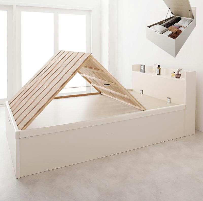 国産 頑丈 すのこ 跳ね上げ式 大容量収納ベッド Long force ロングフォルス セミダブル 深さグランド 〔フレーム色〕ホワイト【北海道・沖縄・離島配送不可】