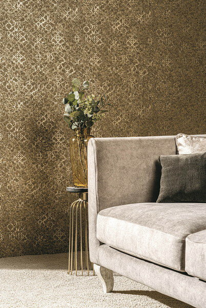 輸入壁紙 テシード イギリス アラベスク ダマスク 幾何学模様 光沢 ゴールド GALERIE/ギャラリー(53cm巾 × 10m巻) 全3色 [1ロール単位]