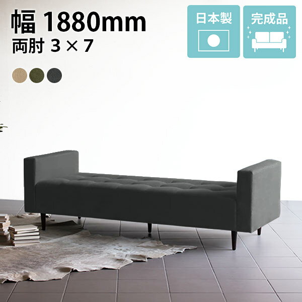 Baggy DA 3×7 モダン生地■サイズ幅1880 奥行き720 高さ590 mm座面高さ:400 mm脚の高さ:150mm■材質[本体]ウレタンフォーム [脚]天然杢[張地]ポリエステル100%■カラーベージュ/カーキ/グレーからお選び下さい。※モニターなどの閲覧環境によって、実際の色と異なって見える場合がございます。■重量重量:約30.5kg■仕様脚:5本日本製完成品(脚のみお客様取り付け)ローソファとしても使えるアジャスター付属※カバーの取り外しはできません■ブランド ■送料送料無料※離島は送料別途お見積もり。■納期ご注文状況により納期に変動がございます。最新の納期情報はカラー選択時にご確認ください。※商品到着までの日数は、地域により異なりますご購入時にお届け日の指定がない場合、最短日での出荷手配を行いメールにてご連絡させていただきます。■配送・開梱設置について【ご注意ください】離島・郡部など一部配送不可地域がございます。配送不可地域の場合は、通常の配送便での玄関渡しとなります。運送業者の便の都合上、地域によってはご希望の日時指定がお受けできない場合がございます。建物の形態(エレベーターの無い3階以上など)によっては別途追加料金を頂戴する場合がございます。吊り上げ作業などが必要な場合につきましても追加料金はお客様ご負担です。サイズの確認不十分などの理由による返品・返金はお受けできません。※ご注文前に商品のサイズと、搬入経路の幅・高さ・戸口サイズなど充分にご確認願います。■備考※製造上の都合や商品の改良のため、予告なく仕様変更する場合がございますので予めご了承ください。国産オーダー商品につき、ご注文のキャンセル・変更につきましてはお届け前でありましても生産手配が済んでいるためキャンセル料(商品代金の50%)を頂戴いたします。 当店オリジナル家具を全部見る■管理番号0000a15849/0000a15852/0000a15853/メーカー希望小売価格はメーカーカタログに基づいて掲載しています■おすすめラインナップこのページは Baggy DA 3×7 モダン生地のページです。ステッチとボタンで作られたマス目の数を変えることにより無数のサイズバリエーションを展開する、アーネオリジナル家具の中でも人気の高いバギーベンチシリーズに両サイドに肘掛けが付いたタイプのベンチが登場しました。背もたれがないソファーベンチにほんの少しのアイデア「肘掛け」をプラス。肘掛けを付けただけのシンプルなデザインですが、モダンでおしゃれな印象はそのまま、今までにないカタチのソファベンチが完成しました。背もたれの無いベンチソファーは、お部屋を圧迫感なくすっきりとした印象にしてくれます。さらに肘掛のアクセントで、クラシカルな重厚感が加わります。主役のインテリアになるおしゃれなベンチソファ。お部屋の真ん中にドカッと置いてみれば、たちまち主役のインテリアに。普通のカタチのソファとは一味違う魅力がたくさんあります。座るだけでなく、横になってくつろぐことも。小柄な女性にはベッド代わりにもできます。大型サイズなので、ショップや休憩室・待合室などたくさんの人が集まる広いスペースにもオススメ。背もたれなしのソファベンチとしては、ありそうでなかなか無いサイズとデザイン。他のインテリアとの合せ方や配置によって、工夫次第で今までにないおしゃれなスペースが創りだせそう。