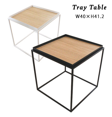 hokushin トレイテーブル ブラック HBN-032 ホワイト 幅40 奥行40 高さ41.2 アイアン 正方形 HWN-036 トレー ナラ材 サイドテーブル トレーテーブル 花台 鉄製脚 大阪製造 日本製 送料込み