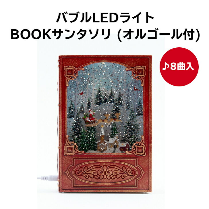 函館 バブルLEDライト BOOKサンタソリ オルゴール付 クリスマス LED ライト 置物 プレゼント 光る サンタ ツリー 雑貨 Xmas オルゴール