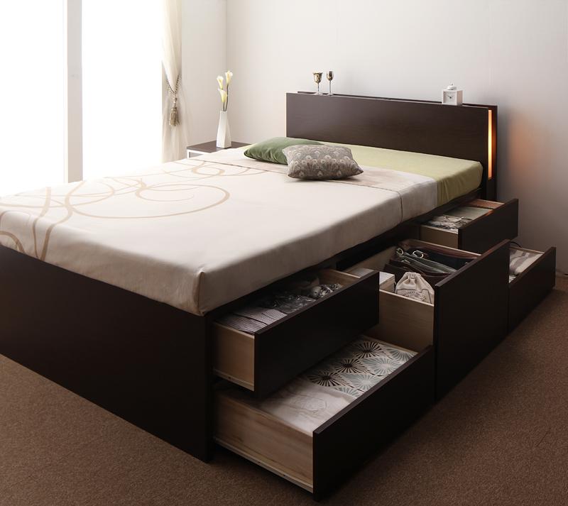 【 収納ベッド 】 照明 コンセント付き チェストベッド 収納ベッド 収納・引き出し付き Huette ヒュッテ 薄型スタンダードボンネルコイル付き ボンネルコイル セミシングル 日本製 国産ベッド 日本製ベッド マットレスセット マットレス有 大型収納 日本製 国産ベッド