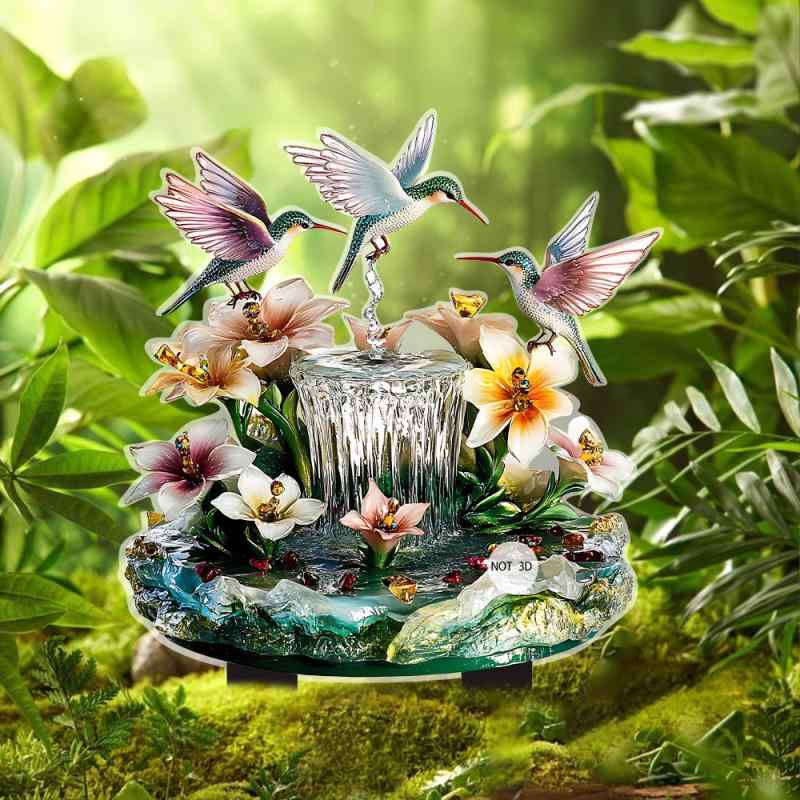 ガーデンピック アクリル製 2D平面 屋外用 鳥と花 デザイン アメリカンカントリー風 おしゃれ 庭 芝生 鉢植え ガーデンオーナメント 雑貨(x2)