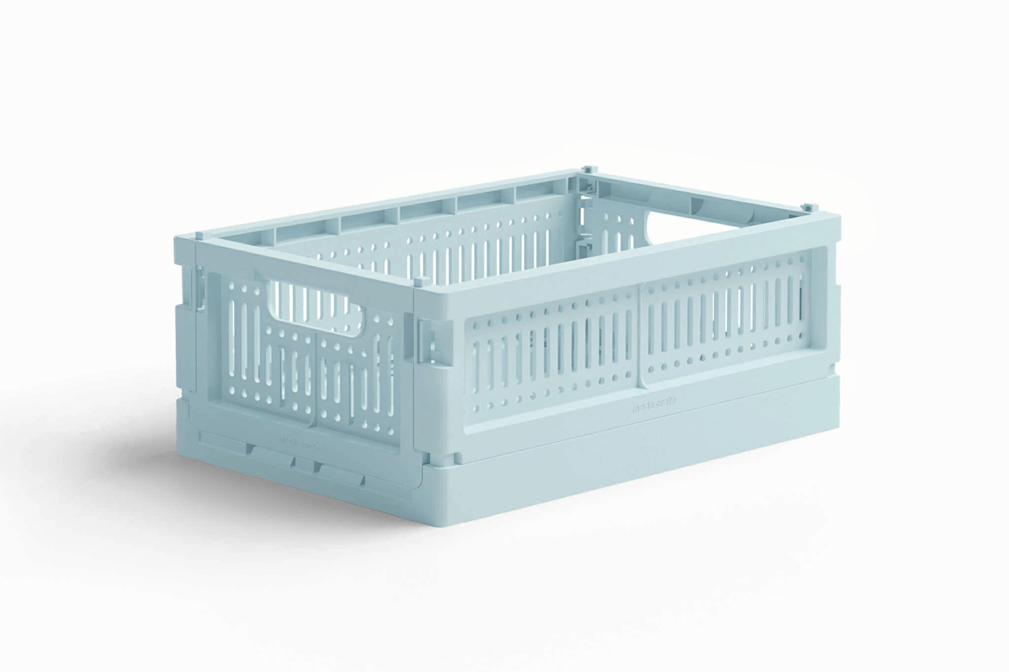 made crate 100% リサイクルプラスチックの折りたたみボックス/クレート Miniサイズ Ice Cube Blue 【北欧 バスケット かご プラスチック コンテナ 折りたたみ 収納用品 ランドリー リビング キッチン スタッキング クレート ボックス型 キャンプ インテリア おしゃれ カ