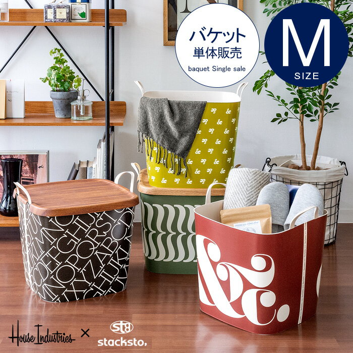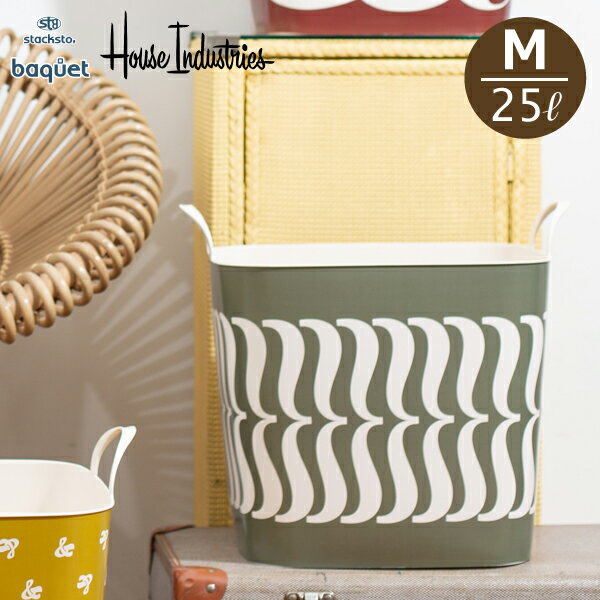 【選べる特典付き】スタックストー M コラボシリーズ バケット 25L 軽量 バスケット 収納 洗濯かご 収納ボックス 収納ケース かご バケツ おしゃれ ランドリーバスケット ハウスインダストリーズ 北欧 角型[ stacksto, baquet Mサイズ House Industries ]