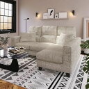 ソファ 4人用 幅241cm カバーリングソファ コーナーカウチソファ ハイバック 座面ファブリック クッション付き モダン 北欧風 アイボリー×アイボリー L字