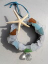 Mermaid jewelry シーグラス(ビーチグラス)スターフィッシュ ミニリース(約13cm)サンキャッチャー 玄関 壁飾り ディスプレイ ハンドメイド ハワイインテリア