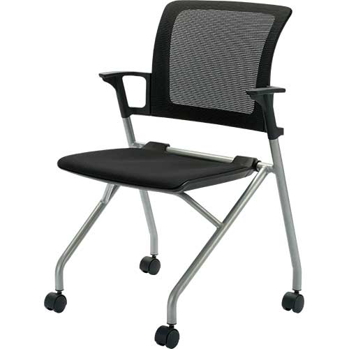 ●脚が選べるミーティングチェア。ハーフ肘付きで立ち座りも楽々。座のしなりが快適なチェア。座の芯材にメッシュを使用しているので底づき感がなく、座の前部分には樹脂のサポートがあるので太腿へのあたりがソフトです。●外形寸法(幅)[mm]:558●外形寸法(奥)[mm]:580●外形寸法(高)[mm]:841●質量[kg]:6.3●シリーズ:MC-4●タイプ:キャスター脚●色:ブラック●色(背):ブラック●色(座):ブラック●肘:肘付き●座面高[mm]:445●座面寸法(幅)[mm]:406●座面寸法(奥)[mm]:435●肘高[mm]:640●スタッキング可能数[脚]:4●機能:スタッキング●webお届け商品形態:組立・設置商品●仕様:座面メッシュ張り●材質:背(表面/芯材)=メッシュ(ポリエステル)/ナイロン、座(張地/芯材)=布(ポリエステル)/メッシュ・ナイロン、クッション=ウレタンフォーム、脚直径22mmスチールパイプ(粉体塗装・シルバー色)、キャスター=ナイロン双輪キャスター●家具配送便(組立設置込)リニューアルに伴い、パッケージ・内容等予告なく変更する場合がございます。予めご了承ください。広告文責:楽天グループ株式会社050-5212-8316