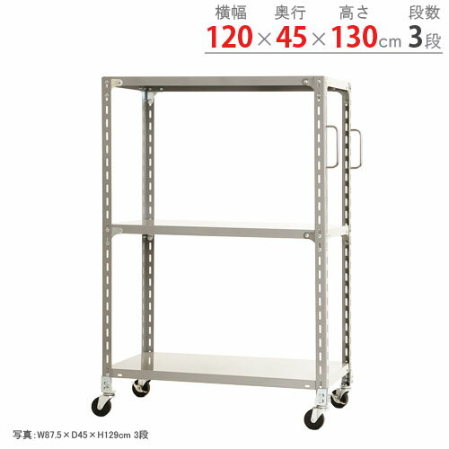 【個人宅も送料無料】 軽量キャスターラック グリップ付 幅120×奥行45×高さ130cm 3段 ホワイトグレー 150kg/全 【キャスター付きラック最安値に挑戦】 【スチール棚 スチールラック 業務用 収納棚 収納ラック】 【商品key:[W120][D45][H150]】