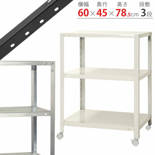 スチールラック スマートラック NSTRK-237幅60×奥行45×高さ78.5cm 3段ホワイト ブラック 亜鉛メッキ 80kg/全スチール棚 スチールラック キャスター付き 収納棚 収納ラック キッチン シェルフ リビング オフィス 防災収納 商品key:[W60][D45][H75]