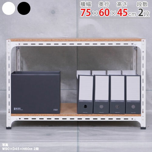 スチールラック アングル棚幅75×奥行60×高さ45cm 2段ホワイト ブラック 70kg/段スチール棚 スチールラック 業務用 収納棚 収納ラック キッチン シェルフ リビング DIY ガレージ 防災収納 倉庫 カラーアングル 店舗什器 商品key:[W75][D60][H45]