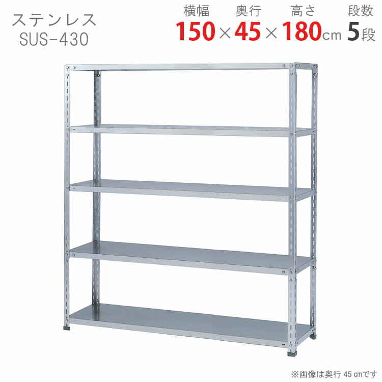 【個人宅も送料無料】 ステンレスラック 力量タイプ SUS-430 幅150×奥行45×高さ180cm 5段 ステンレス 150kg/段 【楽天最安値に挑戦!】 【スチール棚 スチールラック 業務用 収納棚 収納ラック】 【商品key:[W150][D45][H180]】