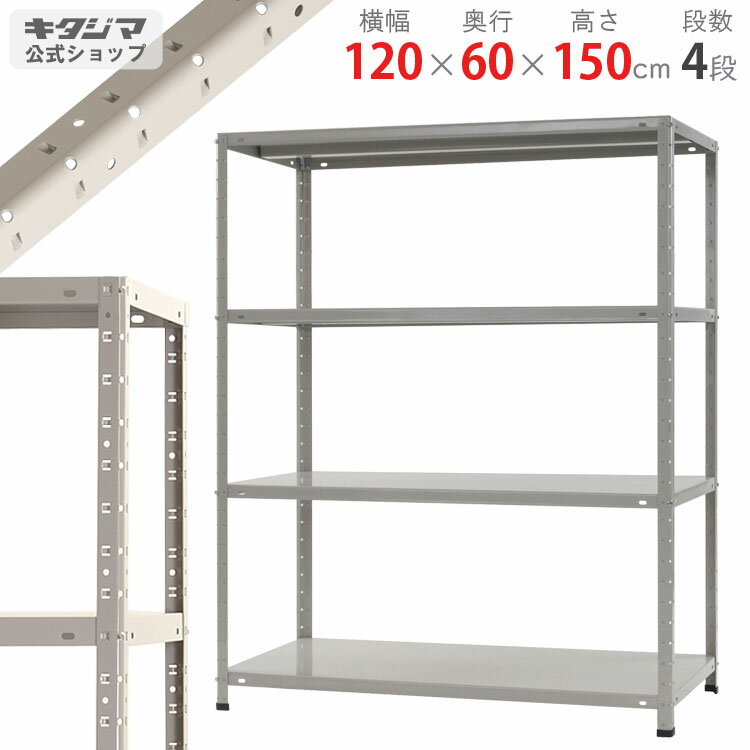 【個人宅も送料無料】 KT-6-15 幅120×奥行60×高さ150cm 4段 ホワイトグレー 150kg/段 【スチールラック楽天最安値に挑戦!】 【スチール棚 スチールラック 業務用 収納棚 収納ラック】 【商品key:[W120][D60][H150]】