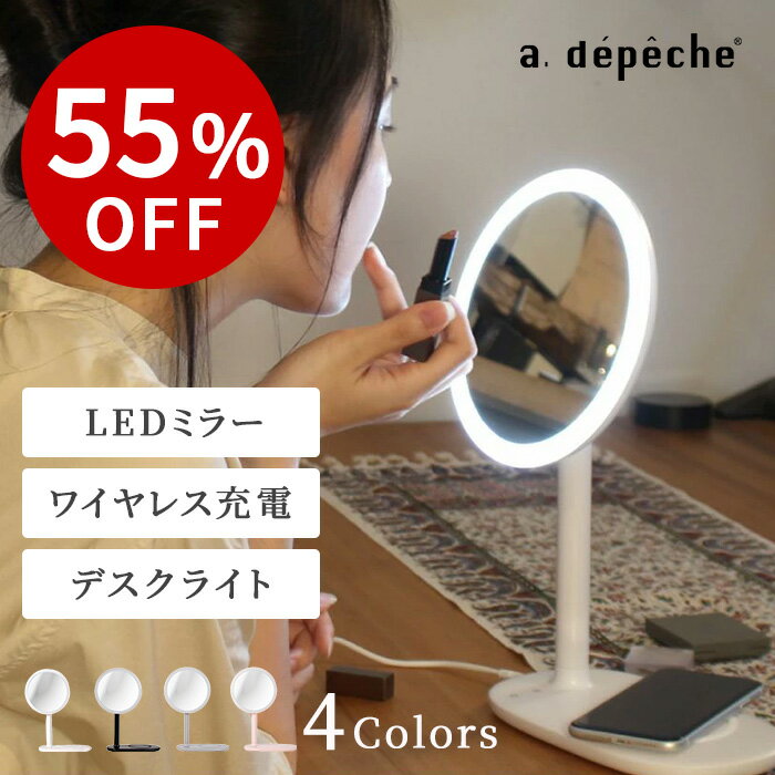 【55%OFF】女優ミラー 卓上 ライト付き LED ワイヤレス充電 qi 急速 iphone galaxy スマホ スマートフォン Android 鏡 丸型 スタンドライト デスクランプ ココロ ビューティー