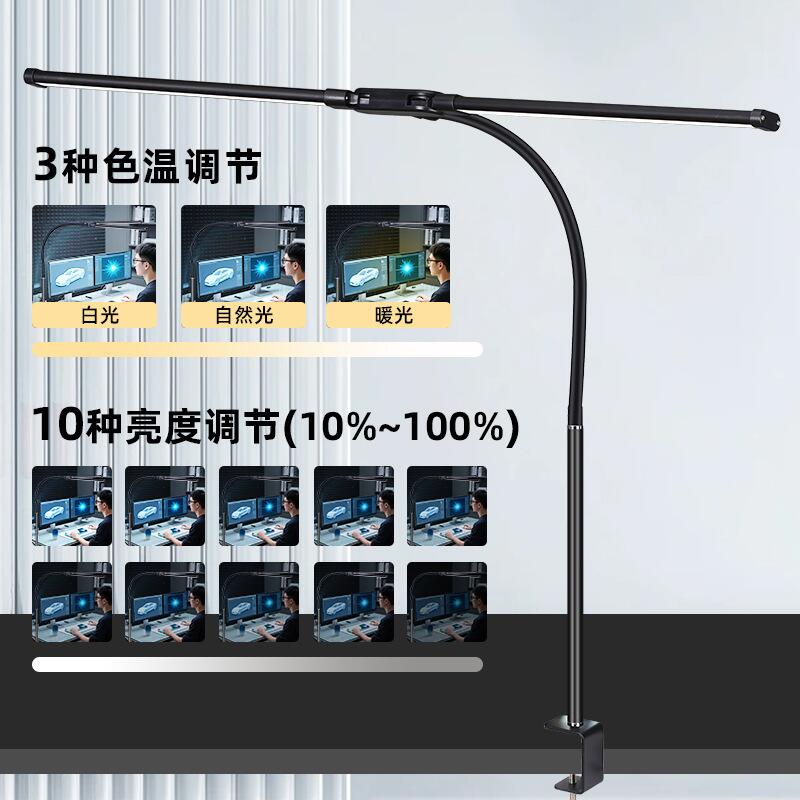 デスクライト LED クリップライト ダブル光源 ダブルヘッド式 3段階調色 10段階調光 ACタイプ クランプ 回転可能 80cm幅広 電気スタンド 卓上ライト クランプ式 デスクランプ クランプライト 目に優しい led 照明 読書/勉強/仕事 ダブルヘッドライト設計で、左右のライトは0°~180°の範囲で調整でき、より大きい照明面積を提供する。高輝度に達し、長時間の仕事や読書でもチラツキなし目に優しいです。 5