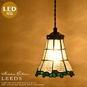 ペンダントライト 1灯 ステンドグラス 照明 LED対応 ダイニング 玄関 階段 廊下 パントリー トイレ サニタリー カフェ アンティーク レトロ ナチュラル クラシック ブルーグリーン リーフ ハンドメイド ガラスシェード LEEDS リーズ ANDALUCIA アンダルシア (2-2
