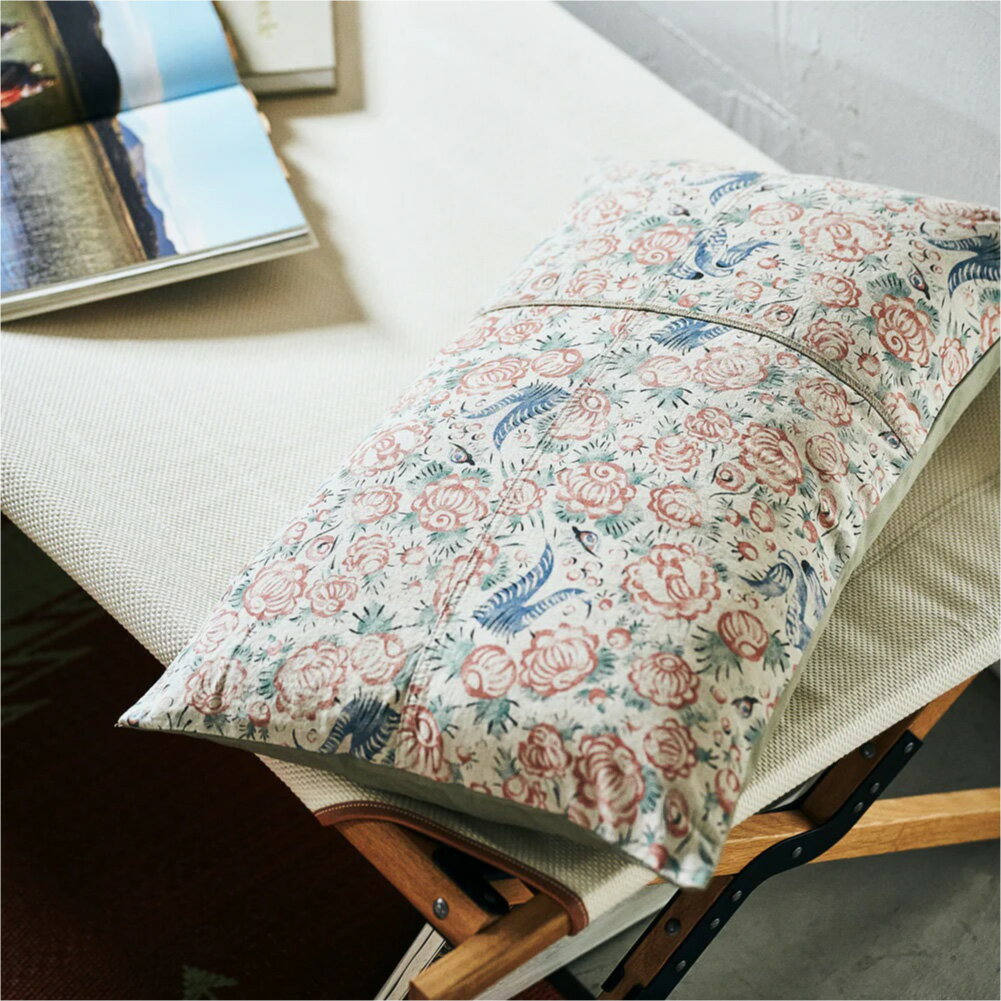 Basshu Long Feather Cushion Floral ロングクッション フローラル 45×75cm クッション 長方形 洗える 大きい 大きめ 北欧 植物 花柄 おしゃれ インテリア ナチュラル 綿 コットン ネイティブ エスニック アジアン アンティーク ビンテージ ベージュ アイボリー 98142