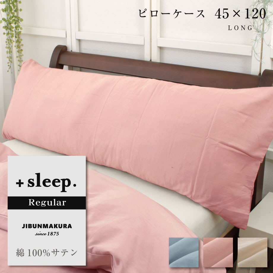 \P5倍&MAX1000円cp/+sleep. Regular 綿100% サテン 無地 枕カバー ロング 45×120cm プラススリープ レギュラー ピローケース LONG ブルー ピンク ベージュ【SP2260TN】【メール便可】