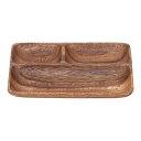 アカシアランチプレート仕切り板付トレーfuji-40460 硬くて粘りのあるアカシア材のプレート ■カラー ブラウン ■商品サイズ(mm)全体:幅200 × 奥行150 × 厚み20 ■商品重量(kg) 0.2 ■材質:天然木(アカシア)■塗装[ラッカー塗装] ■生産地:フィリピン 濃厚で深みのある色合いをもち、 美しい木目の温もりある表情が食卓を優しい雰囲気にしてくれます。 硬くて粘りのあるアカシア材は、 テーブルなどから落としてしまっても破損しにくく、 ガラスのように破片が飛び散ることもないため 小さなお子様がいるご家庭でも安心してご使用いただけます。 食器としてだけでなく、 アクセサリーや鍵などの小物入れとしての使用もオススメです! お部屋に素朴でナチュラルなぬくもりを与えてくれます。 アカシア食器はひとつひとつ丁寧に天然木を削り出して作っているため、 模様や色合いに同じものはなく世界にひとつだけのオリジナルとなります。 ・天然木の為、1点ずつ色合いや風合いに個体差がございます。 ・使用後はすぐ洗い、柔らかい布などで拭いてください。 ・保管の際は直射日光を避けてください。 ・浸け置き洗いはお避けください。 ・たわし、クレンザー、漂白剤の仕様はお避けください。 ・電子レンジ、食洗器は使用できません。