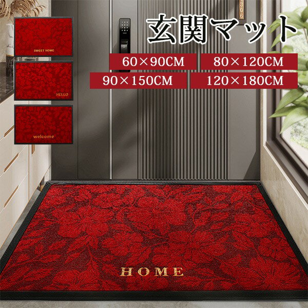 玄関マット 花柄 屋外 室内 泥落とし 滑り止め 洗える おしゃれ シンプル 風水 水洗い ドアマット 上品 かわいい オフィス 店舗 飲食店 新生活 DIY レッド ja746m4m4m6