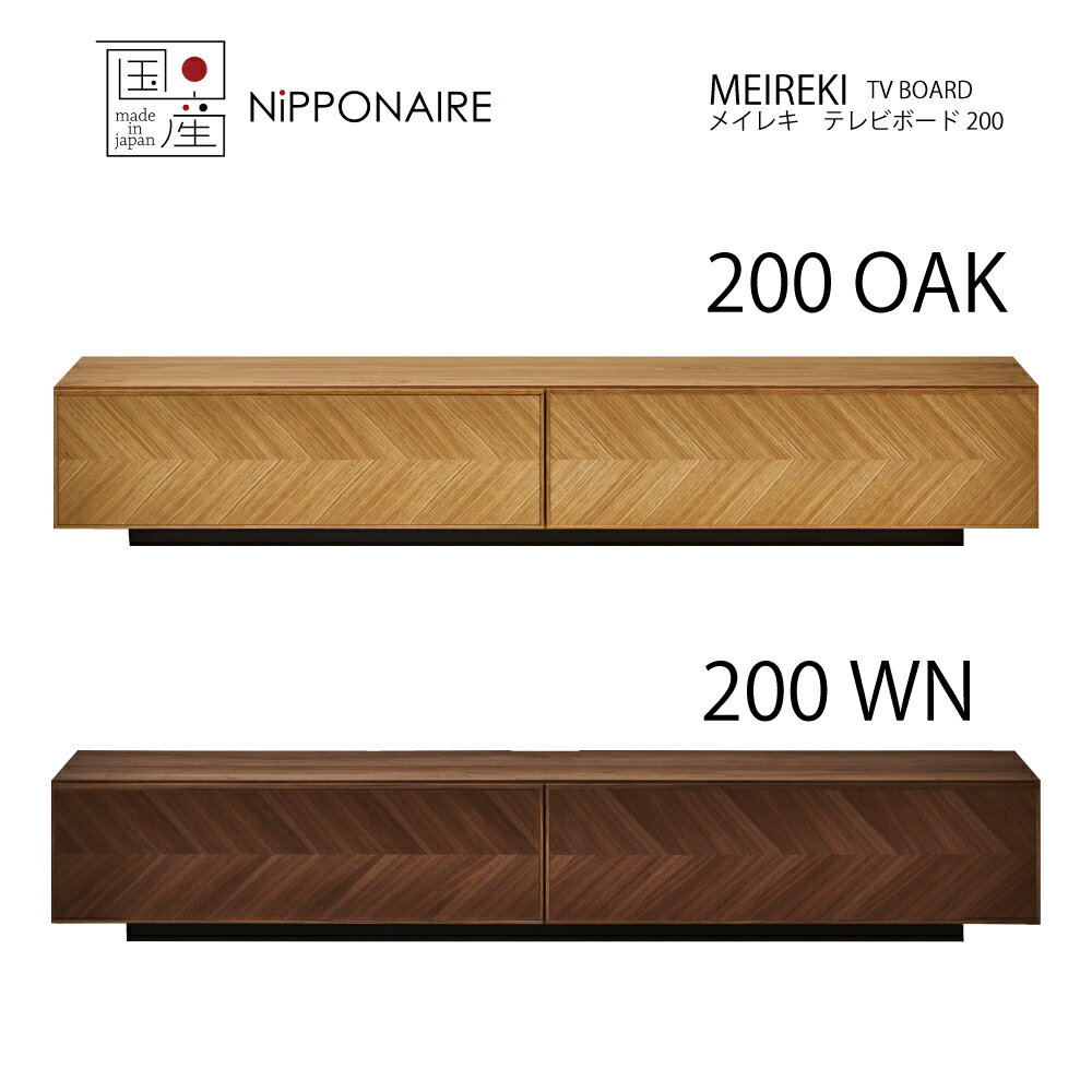 天然木 テレビボード MEIREKI メイレキ 日本製 200cm×40cm 高さ33cm 2色 ウォールナット オーク 引き出し NIPPONAIRE ニッポネア テレビ台 キャビネット ダイニング 棚 家具 インテリア 収納 リビング 北欧 高級 低ホルムアルデヒド おしゃれ モダン【開梱設置無料】
