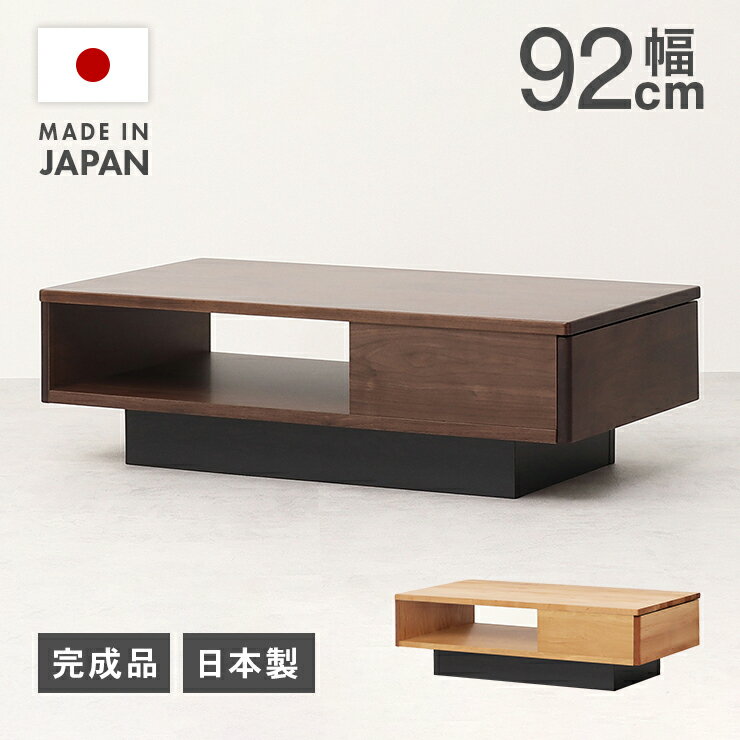 リビングテーブル ローテーブル センターテーブル 幅92cm 完成品 木製 収納 引き出し付き おしゃれ 北欧 国産 日本製 棚付き 低め ロータイプ コーヒーテーブル てーぶる
